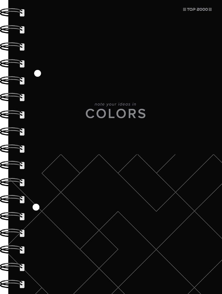 Minimalistyczne kolozeszyty na podwójnej spirali z monokolorowymi okladkami. Geometryczne grafiki nadają nowoczesnego charakteru. Subtelny, biznesowy design dopasuje sie do kazdego biura.