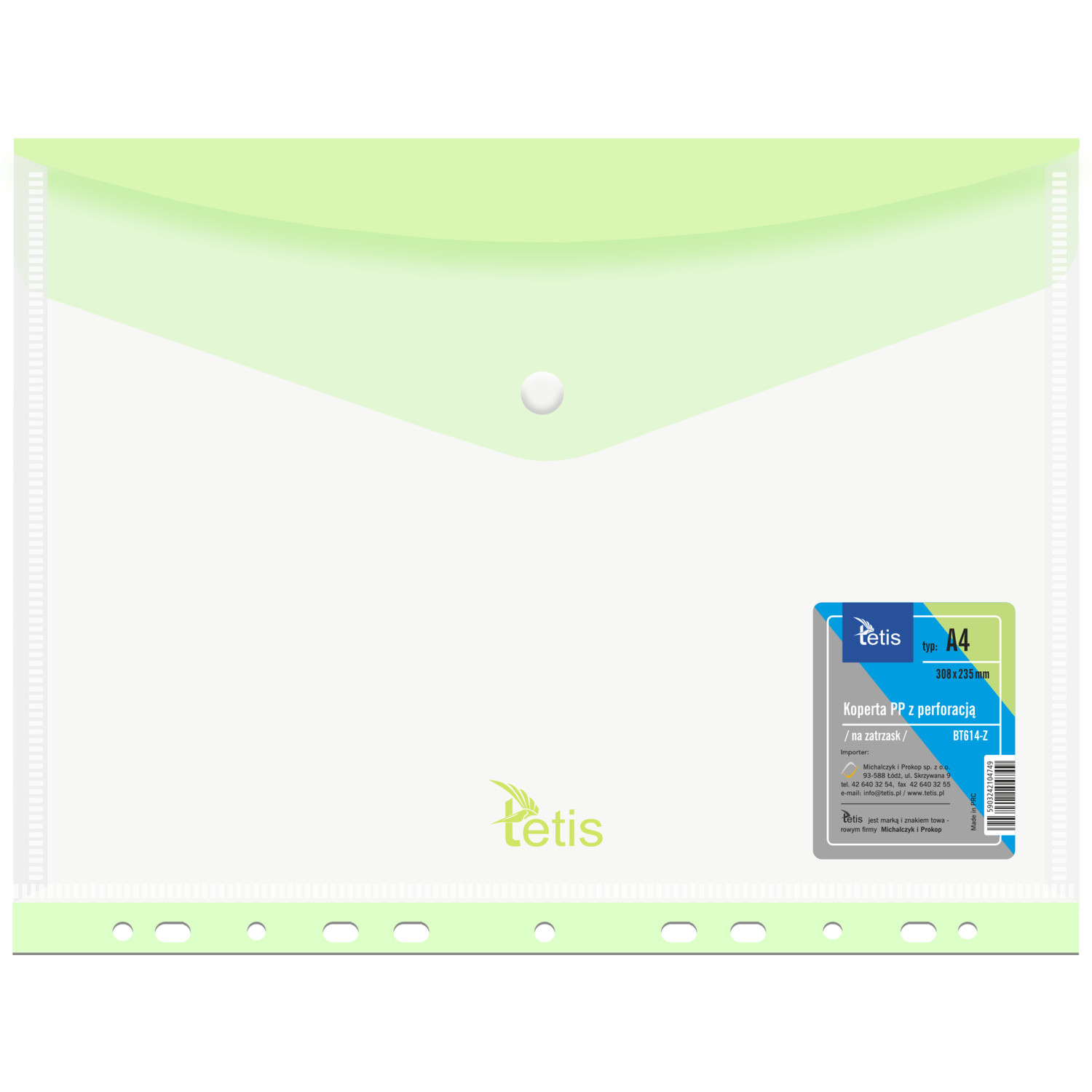 Koperta A4 PP na zatrzask z perforacją ZIELONA BT614-Z TETIS