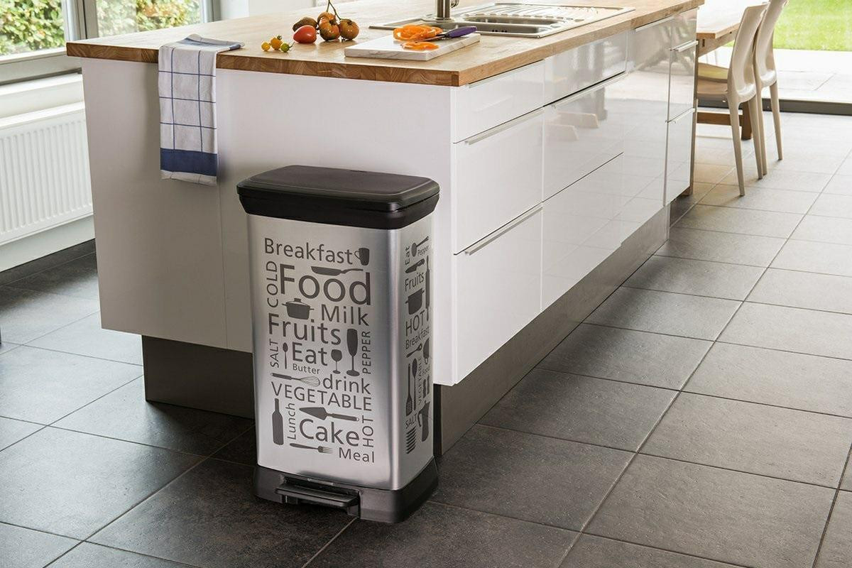 Kosz na śmieci CURVER DECO BIN z pedałem 50L srebrny metalizowany wzór KITCHEN 02162-K07-01 205873