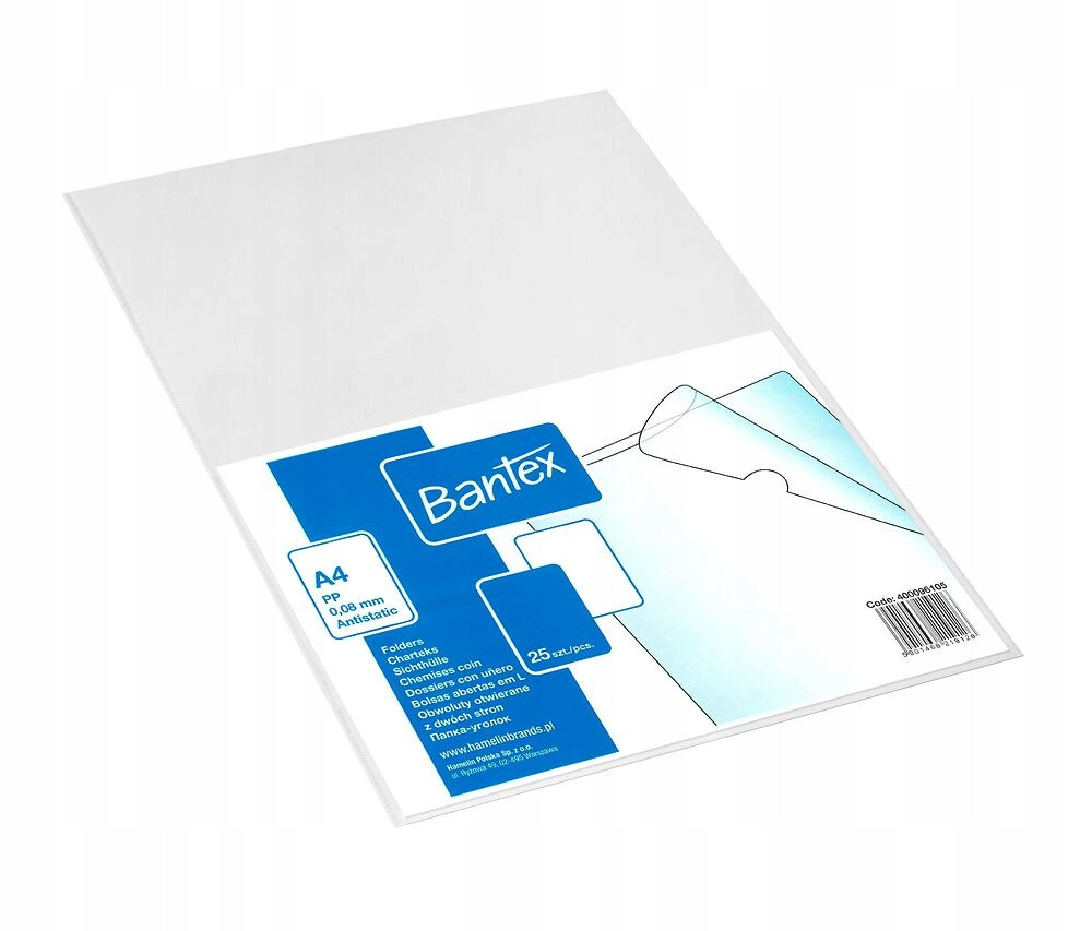 Obwoluty krystaliczne na dokumenty A4 PP 80mic 25 sztuk 400096105 BANTEX
