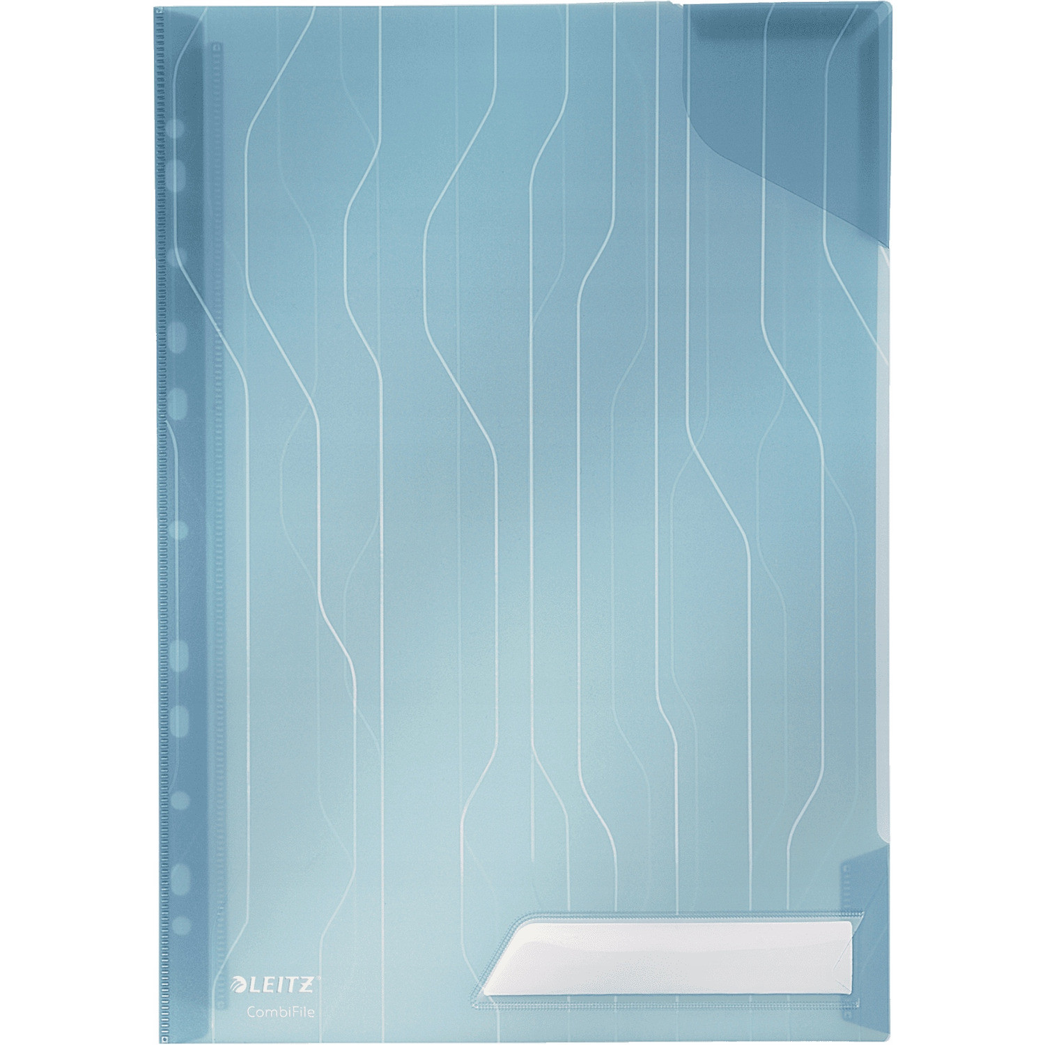 Folder z unikalnym skladanym paskiem z otworami do wpiecia w segregator. Zabezpiecza dokumenty przed wypadaniem dzieki naroznej kieszonce u góry oraz cześciowemu sklejeniu bocznej krawedzi, z boku z prawej strony. Atrakcyjne wzornictwo i tloczenie na folii polipropylenowej.
