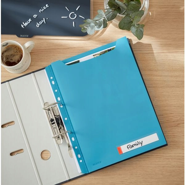 Wygodna, poszerzana koszulka Leitz Cosy zostala zaprojektowana do przechowywania i przenoszenia poufnych dokumentów osobistych oraz biznesowych i jednocześnie ochrony zawartych w nich informacji.