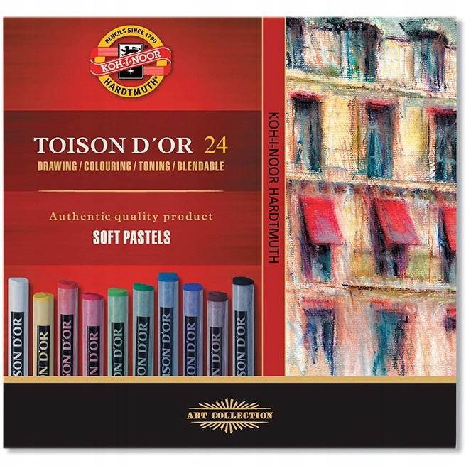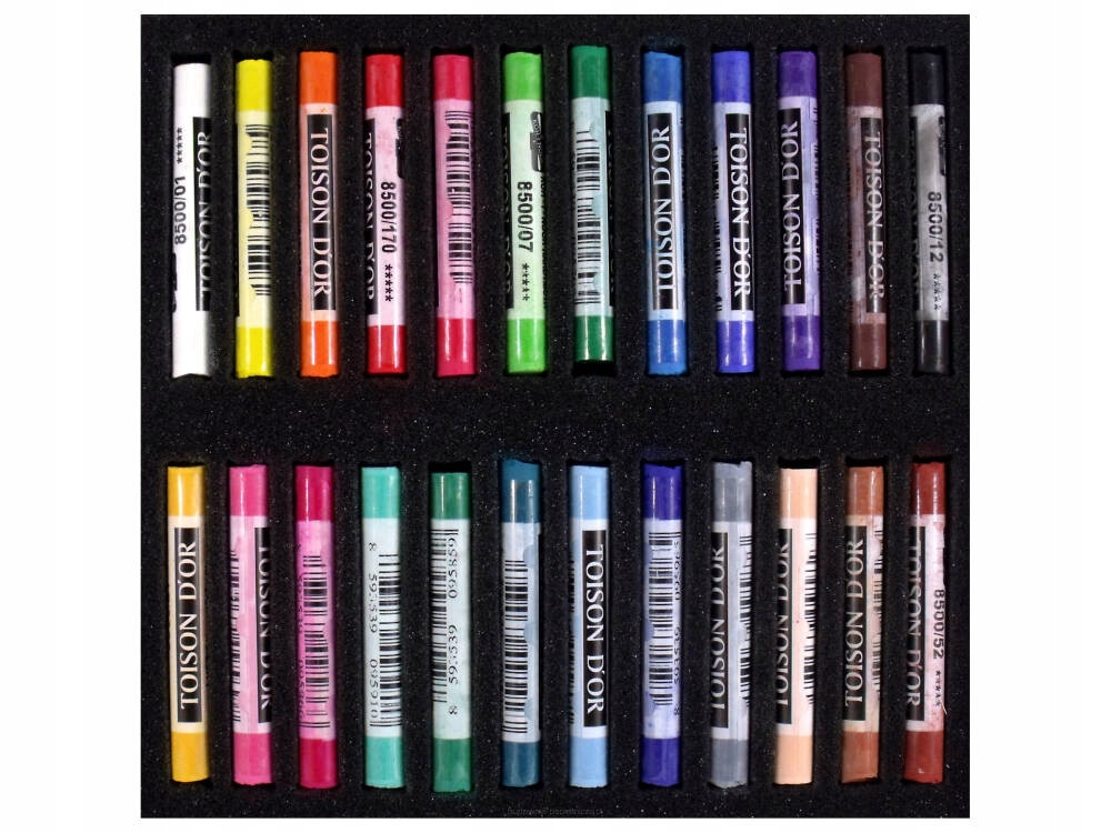 Pastele suche TOISON D'OR zostaly wyprodukowane z najwyzszej jakości skladników. Do ich wyprodukowania zostal uzyty bardzo trwaly i jednolity pigment oraz bardzo drobno sproszkowane naturalne substancje na bazie weglanu wapnia, mineralu kalcytu lub kredy.