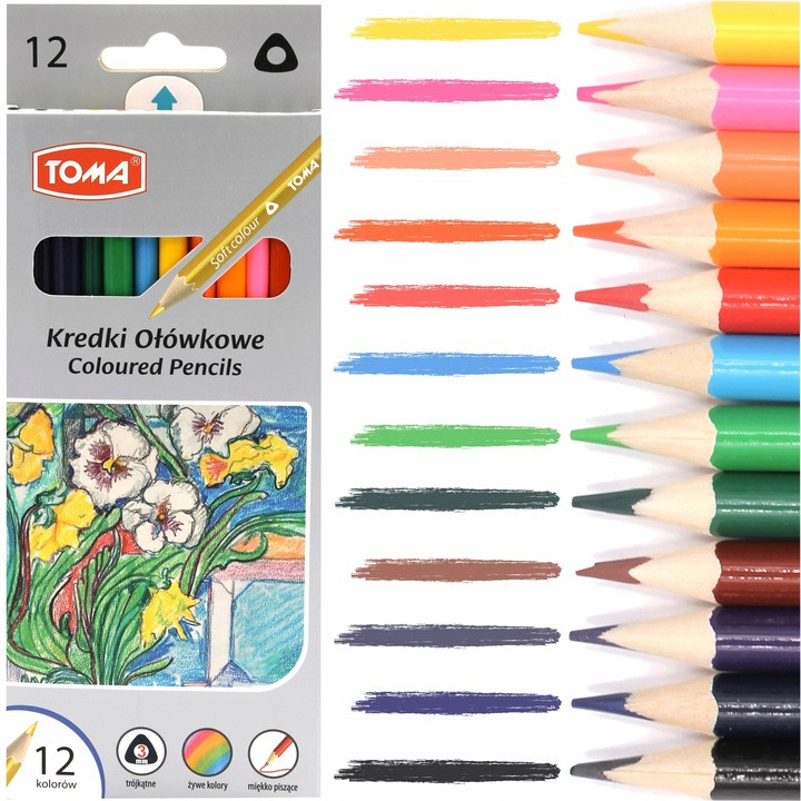 Kredki ołówkowe trójkątne 12 kolorów TO-544 TOMA