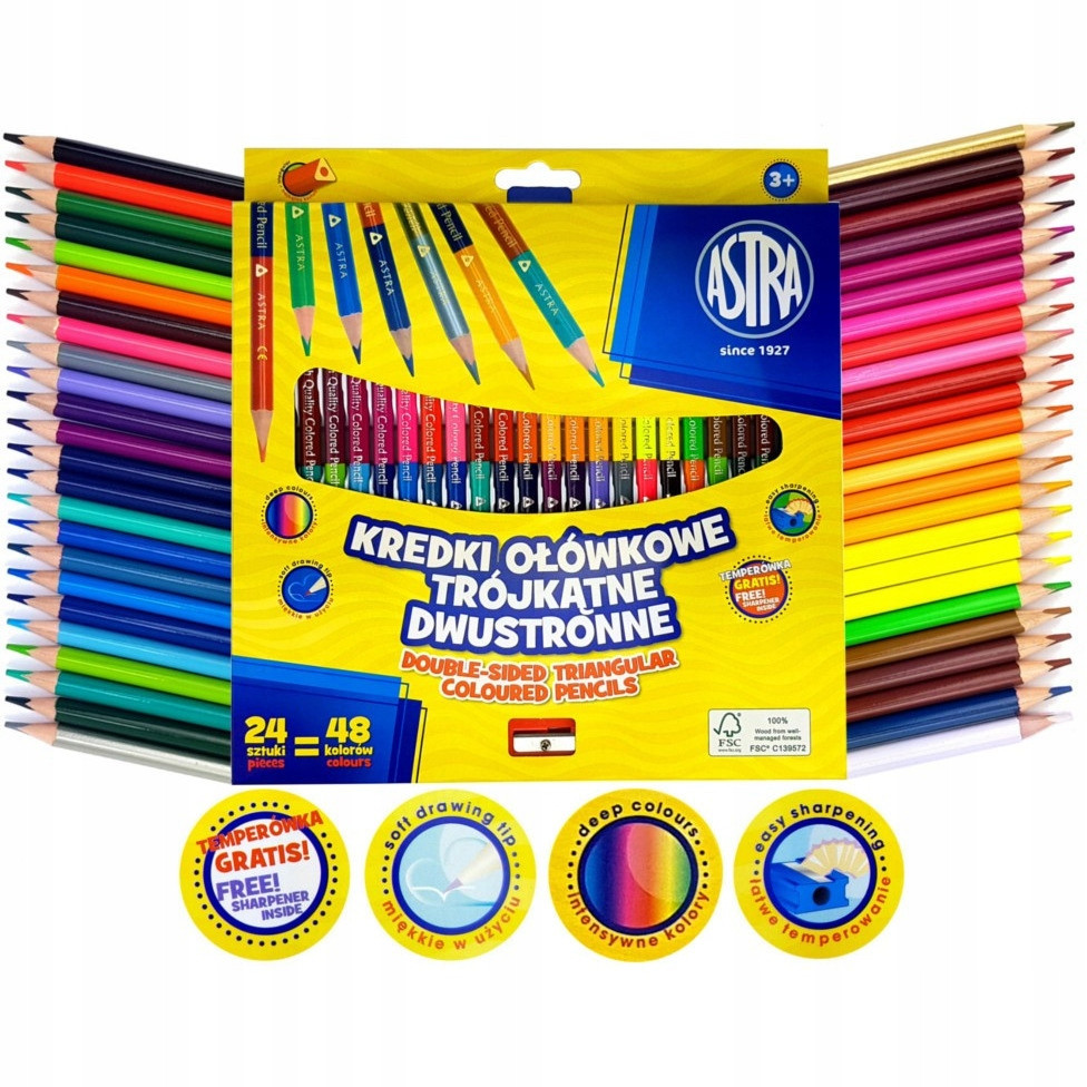 W zestawie znajdują sie 24 kredki zapewniające 48 kolorów.