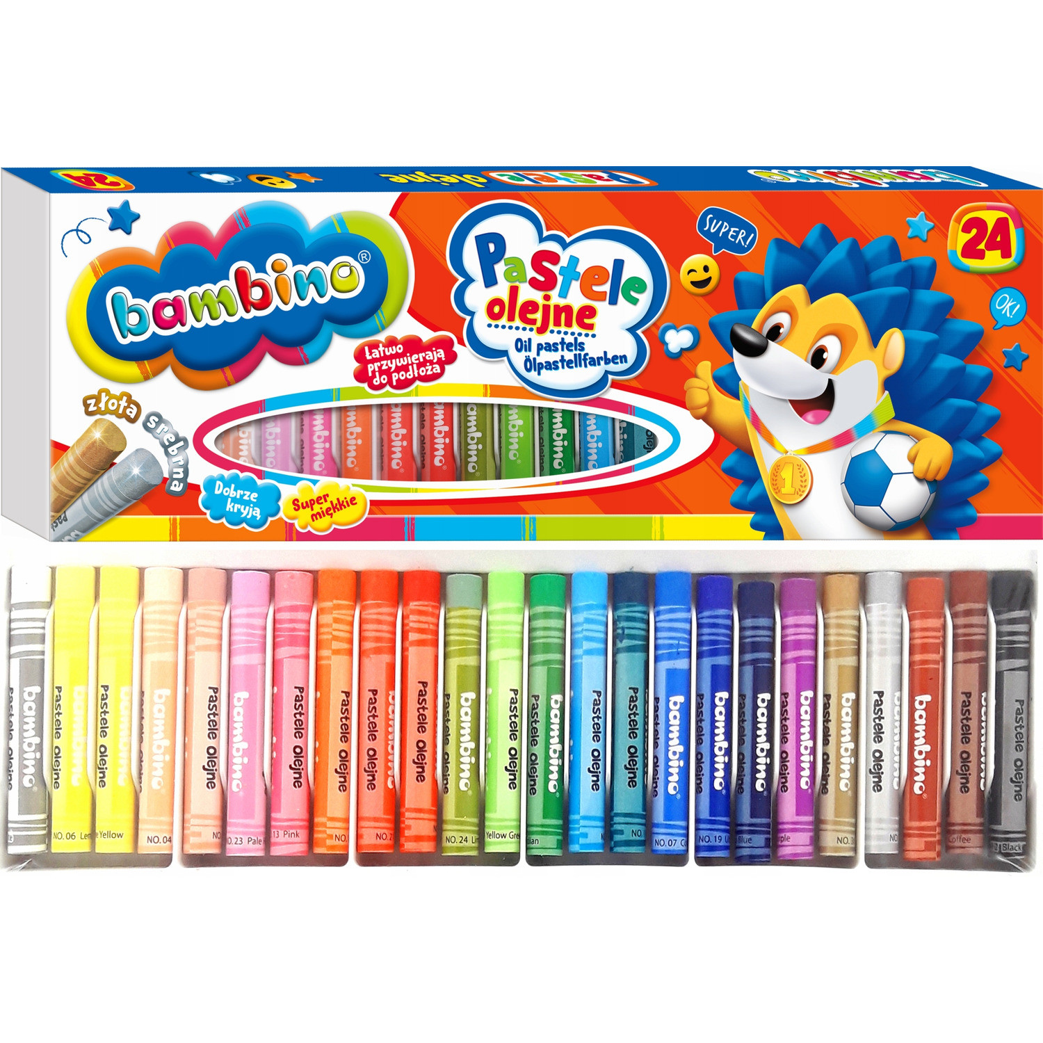 Pastele olejne Bambino idealnie sprawdzą sie zarówno w domu, jaki i w szkole. Charakteryzują sie wyjątkowo intensywnymi i nasyconymi kolorami. Doskonale kryją, idealnie nadają sie do rysowania, wypelniania duzych powierzchni i wykonywania miekkich przejśc pomiedzy kolorami.
