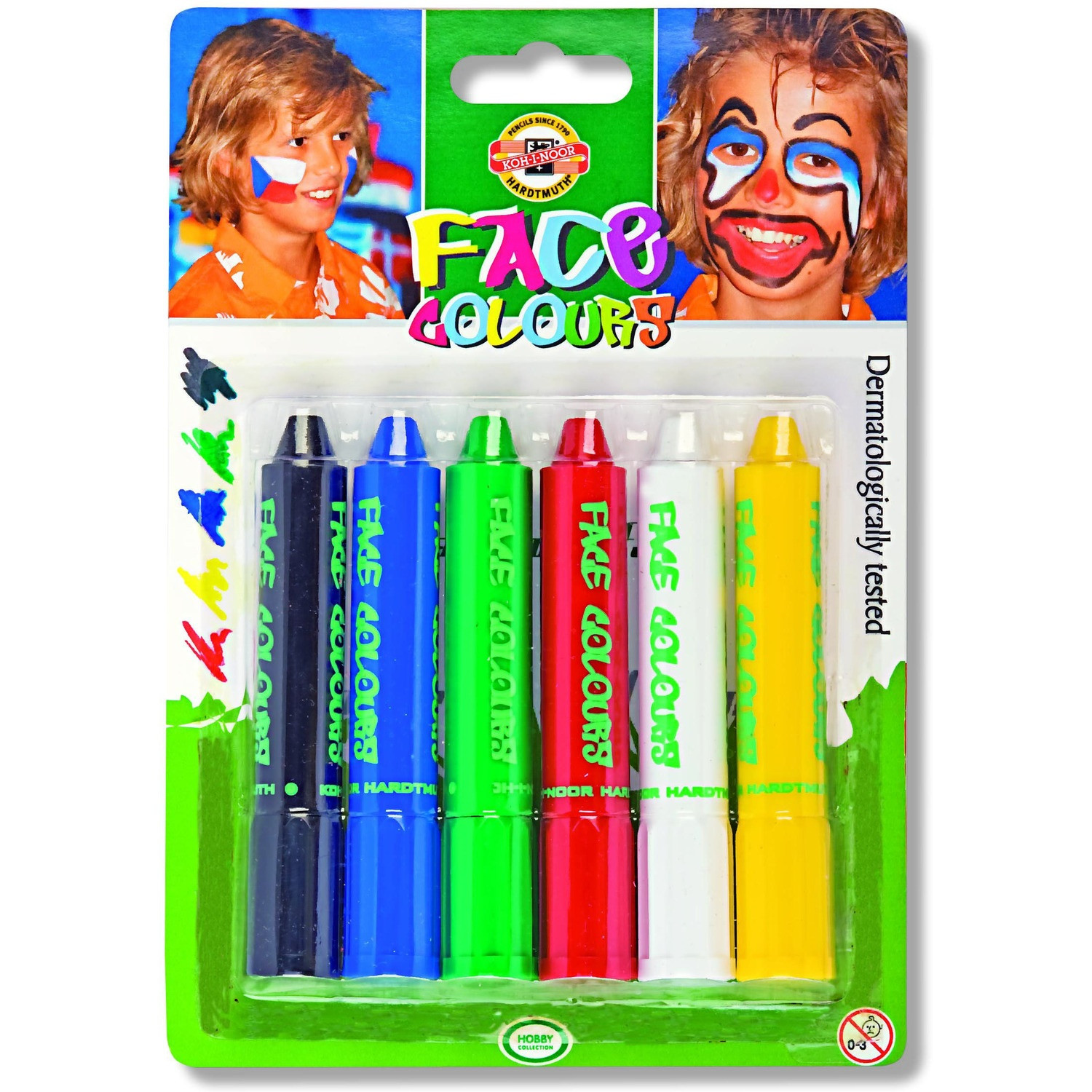 Kredki w formie pomadki do malowania twarzy. Testowane dermatologicznie, nie wywołują podrażnień i nie uczulają. Można je łatwo nanosić oraz zmywać za pomocą wody z mydłem. Doskonale nadają się do malowania twarzy na imprezy sportowe, karnawałowe, dziecięce spotkania, zabawy itp.- Kredki do malowania twarzy idealne do malowania twarzy na imprezy sportowe i karnawałowe, dziecięce spotkania oraz zabawy- Bardzo łatwo się nanoszą, jak również łatwo usuwają wodą z mydłemNie pozostawiają śladów na tkaninach- Farby do malowania twarzy można mieszać ze sobą nanosząc jedną na drugą- Bezpieczne dla skór
