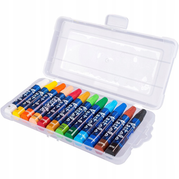 Pastele zapakowane w plastikowym praktycznym w uzytkowaniu pudelku, które gwarantuje bezpieczne przechowywanie oraz wydluza trwalośc kredek i chroni przed lamaniem.