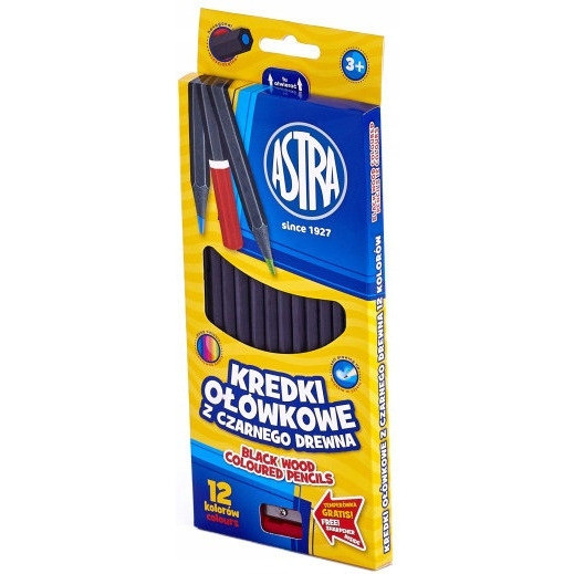 Kredki ołówkowe heksagonalne 12 kolorów czarne drewno 312114001 ASTRA