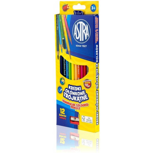 Kredki ołówkowe trójkątne zestaw 12 kolorów + temperówka 312110002 ASTRA