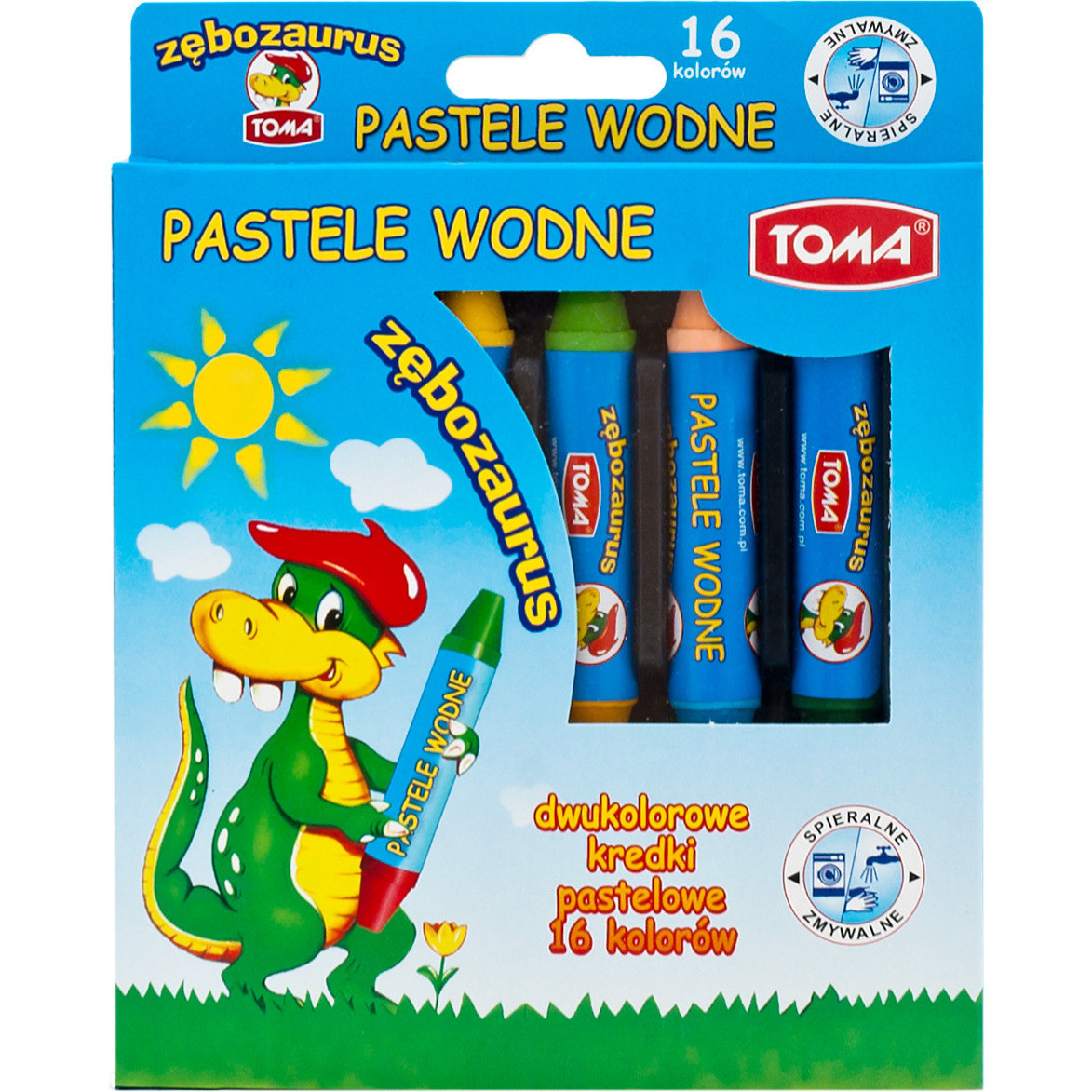 Grube kredki pastele wodne - dwustronne, okrągle w 16 wyjątkowo atrakcyjnych i zywych kolorach, które dodatkowo mozna mieszac za pomocą pedzelka z wodą. Grubośc kredek powoduje, ze doskonale dostosowują sie do reki dziecka.