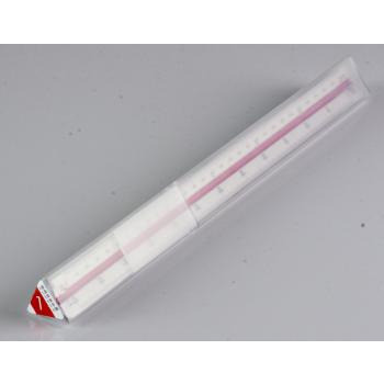 Skalówka z białego ABS nadrukowane 6 precyzyjnych skal 1:10/15/20/25/33/50 długość skal 30 cm malowane 2 rowki pomiędzy skalami transparentne, plastikowe etui
