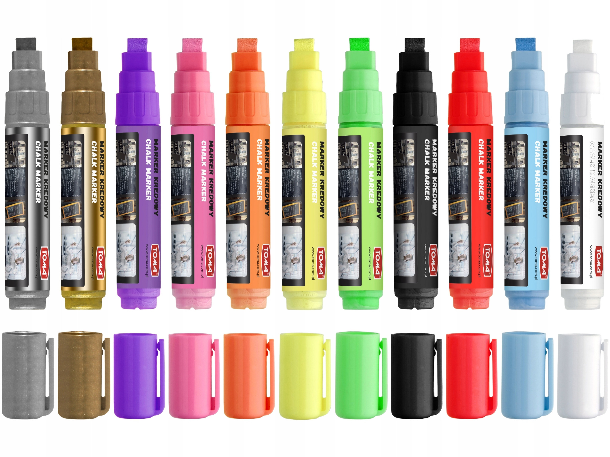 Marker z plynną kredą jest idealny do pisania po tablicach czarnych, bialych, powierzchniach szklanych oraz plastikowych.