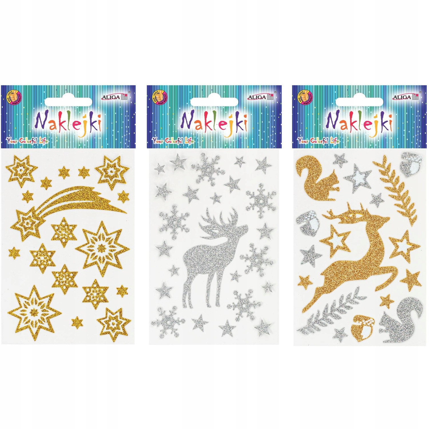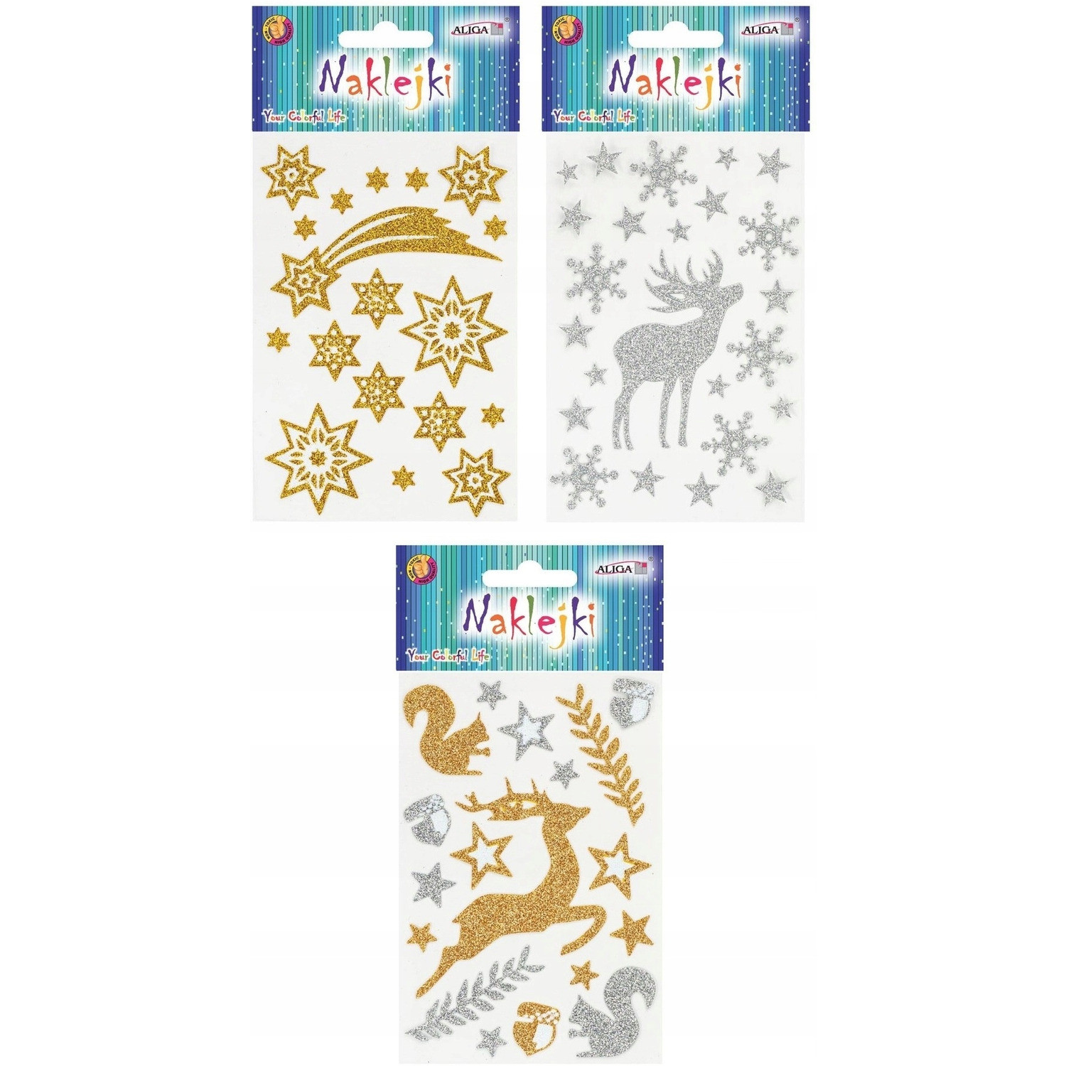Naklejki świąteczne brokatowe złote, srebrne mix wzorów ALIGA NKX-8979