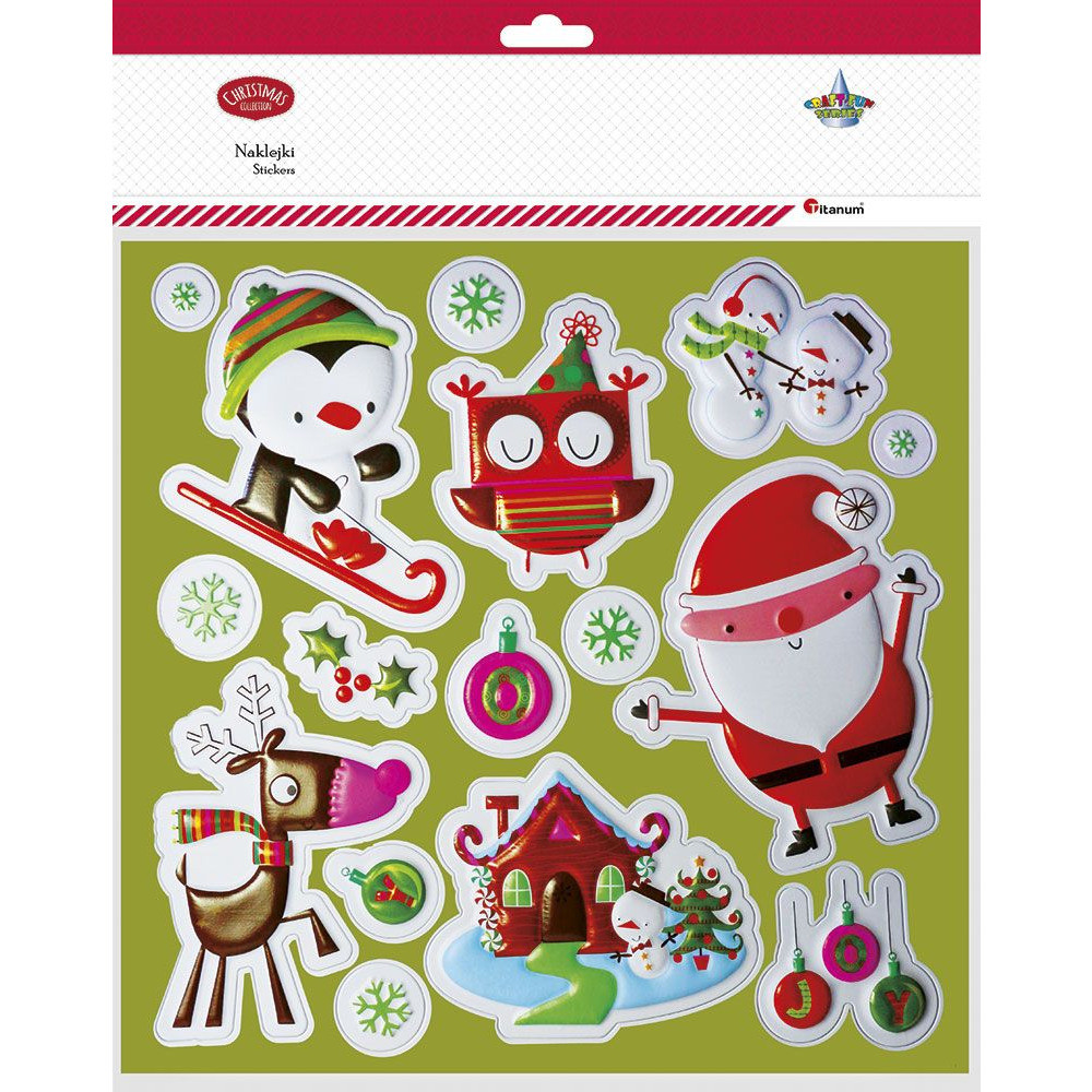 Naklejki wypukłe pingwin, sowa, Mikołaj, renifer mix 16szt. 487005 TITANUM