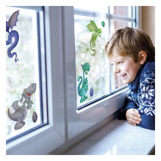 NAKLEJKI foliowe NA OKNO dla dzieci SMOKI