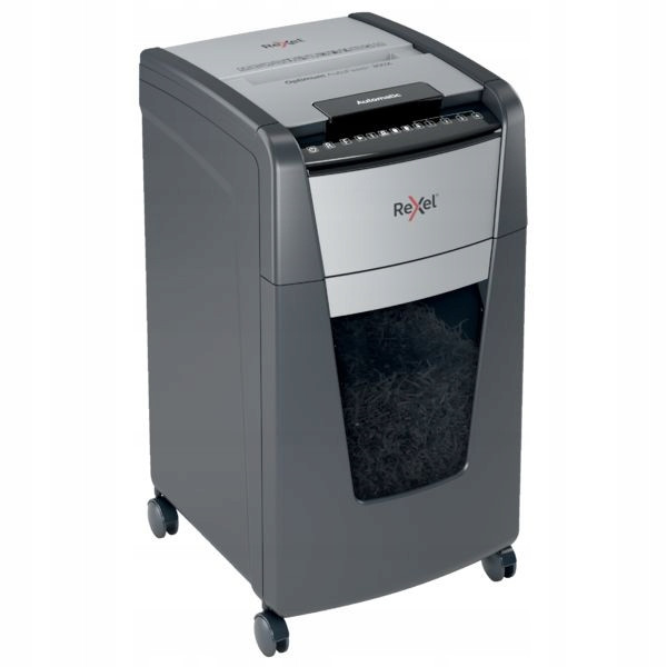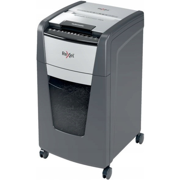Niszczarka automatyczna do papieru Optimum AutoFeed+ 300X jednorazowo niszczy automatycznie do 300 kartek A4 (80 gsm), tnąc arkusze na konfetti (o wymiarach 4 x 26 mm), co zapewnia poziom bezpieczenstwa P-4.