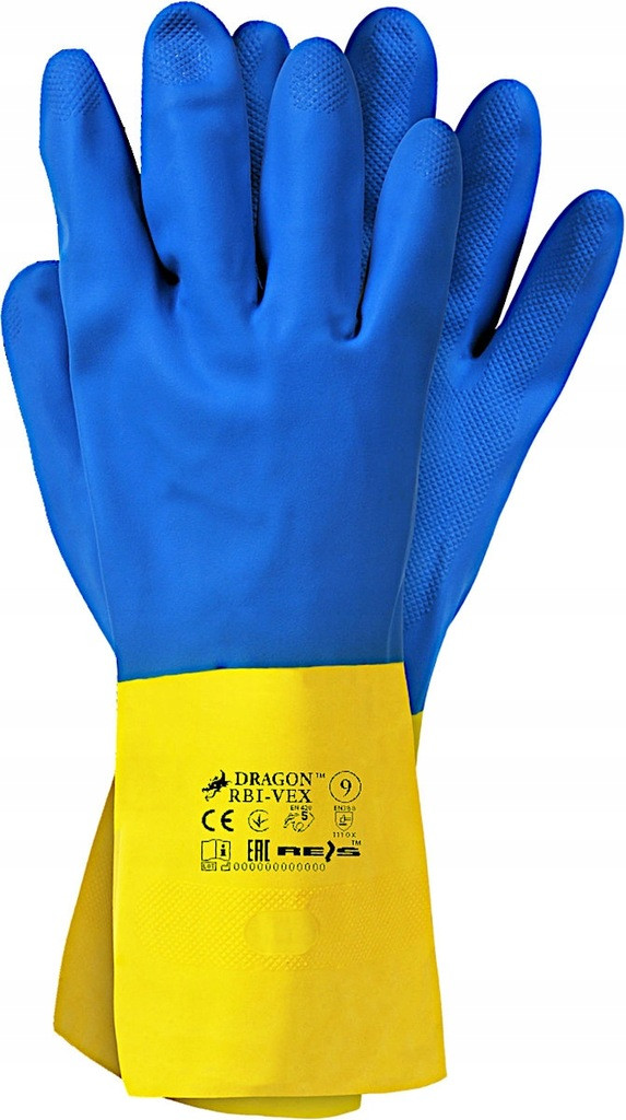 Rękawice REIS DRAGON RBI-VEX gumowe niebiesko-żółte roz.10/XL