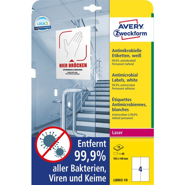 Folia samoprzylepna biała 105x148mm z powierzchnią antydrobnoustrojową L8003-10 AVERY ZWECKFORM
