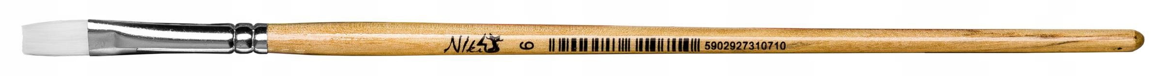 Pedzel plaski przeznaczony jest do malowania: pojedynczych pociągniec, cienkich i grubych linii. Wykonany jest z nylonu. Trzonek pedzla wykonany jest z lakierowanego drewna, wlosie umieszczone jest bezszwowo w metalowej skuwce.