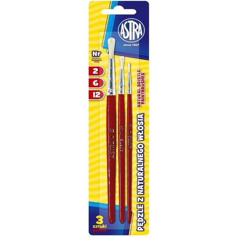 Pedzel szkolny okrągly Astra cechuje sie doskonalą jakością. Wlosie ze świnskiej szczeciny je