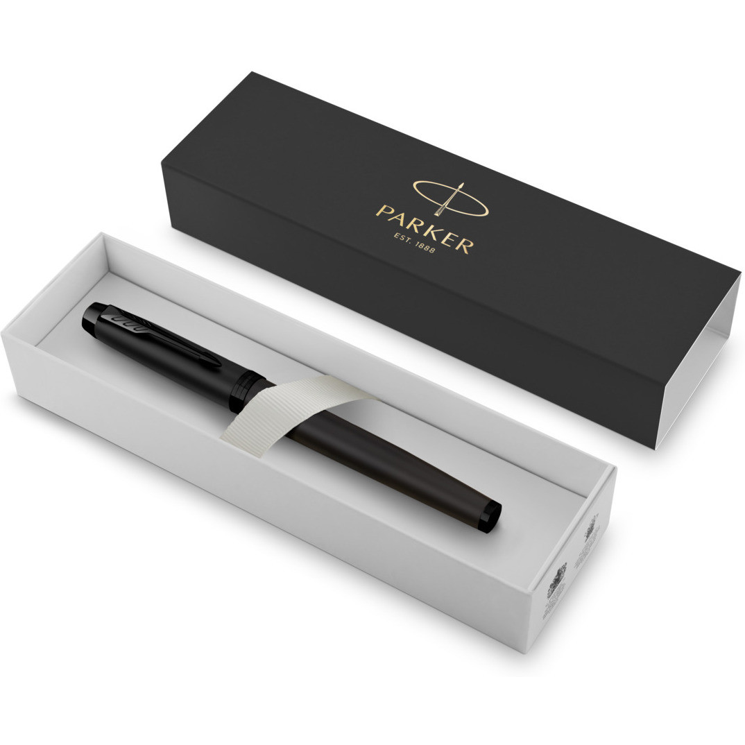 PARKER IM pióro wieczne Achromatic Black, matowo czarne, stalówka fine, niebieski atrament, opakowanie prezentowe.Kolekcja Parker IM Achromatic to uosobienie bezpretensjonalnego, funkcjonalnego stylu - nowa achromatyczna kolekcja Parker IM zwraca na siebie uwagę w subtelny sposób. Pozostaw niezatarte pierwsze wrażenie dzięki dwóm wyrazistym, achromatycznym modelom o matowym wykończeniu: szary z czarnymi akcentami tworzy subtelnie intrygującą atmosferę dzięki stonowanym kontrastom, natomiast wersja całkowicie czarna zachwyca aurą tajemniczości. Starannie wykonane zgodnie z wysokim standardem uk