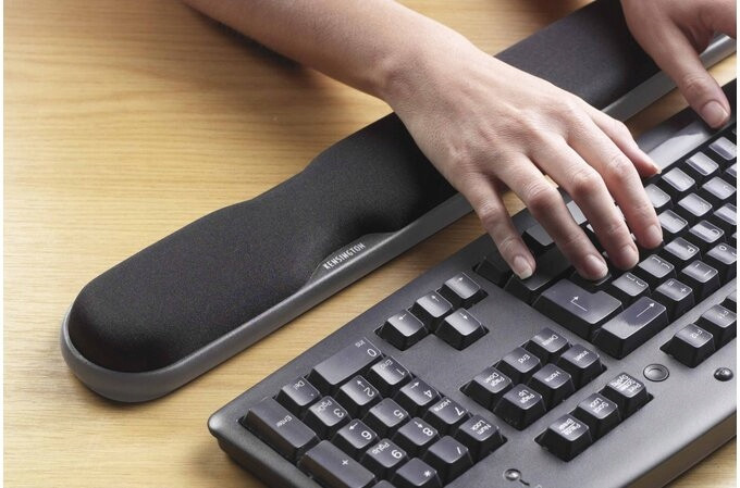 Podkladka pod nadgarstki z regulacją wysokości zapewnia wyjątkowo wygodne podparcie podczas pisania na klawiaturze i jednocześnie świetnie trzyma sie podloza.