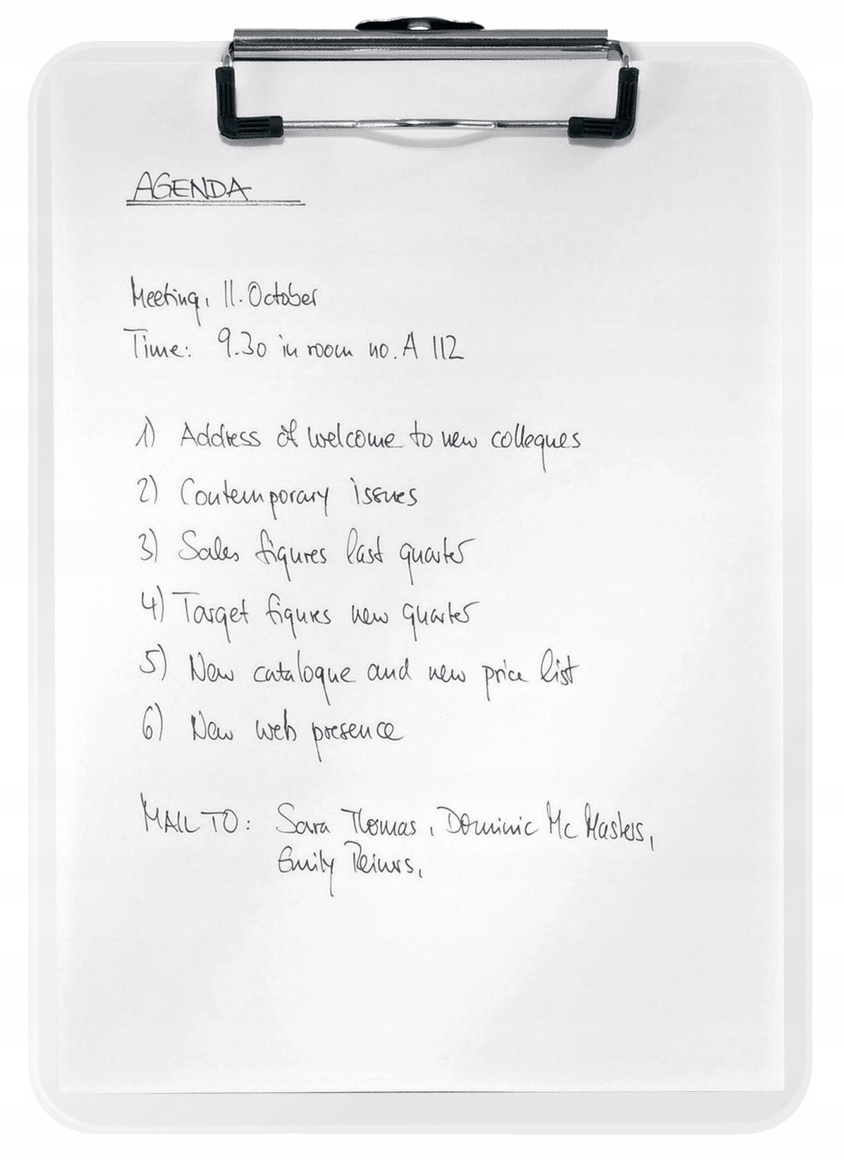 - Mocny metalowy klips bezpiecznie trzyma kartki