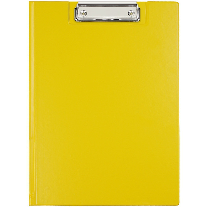 Wykonany z kolorowej folii PVC; środek usztywniony tekturą; wyposażony w sprężysty mechanizm zaciskowy służący do przytrzymywania kartek; kieszeń na wewnętrznej stronie okładki i miejsce na długopis; teczka zamykana; format A4;