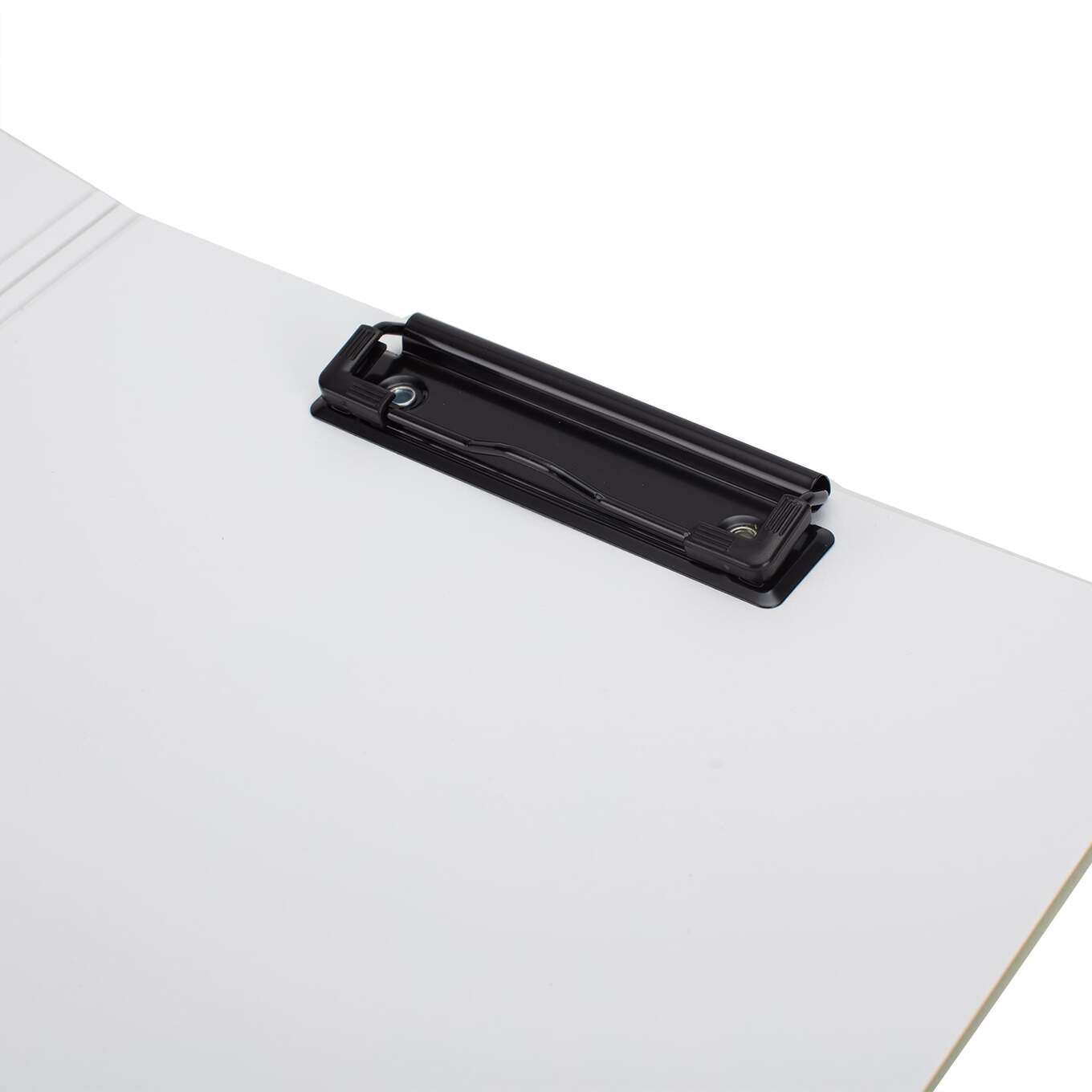 Na górze deski znajduje się metalowy klips z nakładkami plastikowymi na rogach, które zapobiegają odkształceniom papieru podczas trzymania. Klips w kolorze czarnym, kontrastując z resztą produktu, dodaje mu eleganckiego wyglądu. Dla dodatkowego zabezpieczenia dokumentów przed niechcianymi spojrzeniami oraz działaniem czynników zewnętrznych, clipboard można łatwo otworzyć i zamknąć. Produkt ten sprawdzi się idealnie zarówno w pracy, szkole, jak i w domu, gdzie potrzebujemy porządku i estetyki.