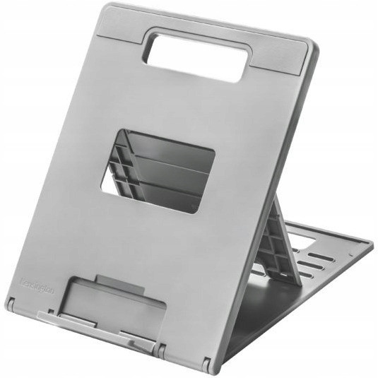 Skorzystaj z rozwiązania Kensington SmartFit Easy Riser Go - ergonomicznej, regulowanej podstawki pod laptopa i podstawki chlodzącej (w kolorze szarym) lączących ergonomie z technologią.