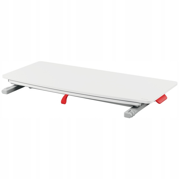 Regulowana podstawka na biurko Leitz Ergo Cosy z wysuwanym pulpitem na klawiature i mysz umozliwia elastyczną zmiane pozycji podczas pracy z siedzącej na stojącą, co stymuluje ruch mieśni, poprawia postawe i zwieksza poziom energii.