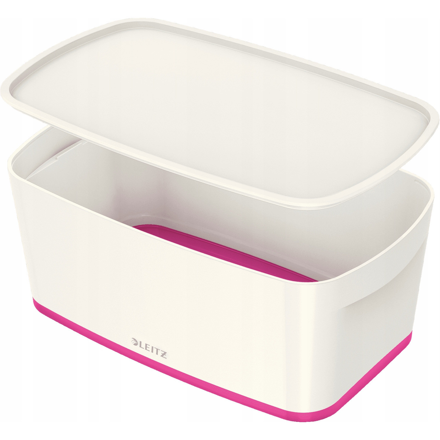 Pojemnik Leitz MyBox, z systemem modulowego ustawiania, stwarza mozliwośc eleganckiego przechowywania akcesoriów w domu lub biurze.