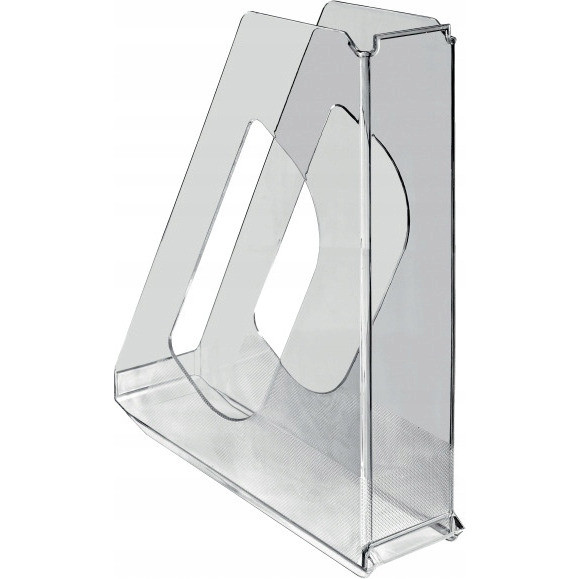 Wysokie, cześciowo wyciete ścianki boczne pozwolą na latwy dostep do zawartości, chroniąc ją jednocześnie przed zniszczeniem. Ten przezroczysty pojemnik z ozdobnym wzorem w podstawie doda stylu Twojemu miejscu pracy w domu lub w biurze. Wspaniale pasuje do pozostalych artykulów na biurko z linii Europost.