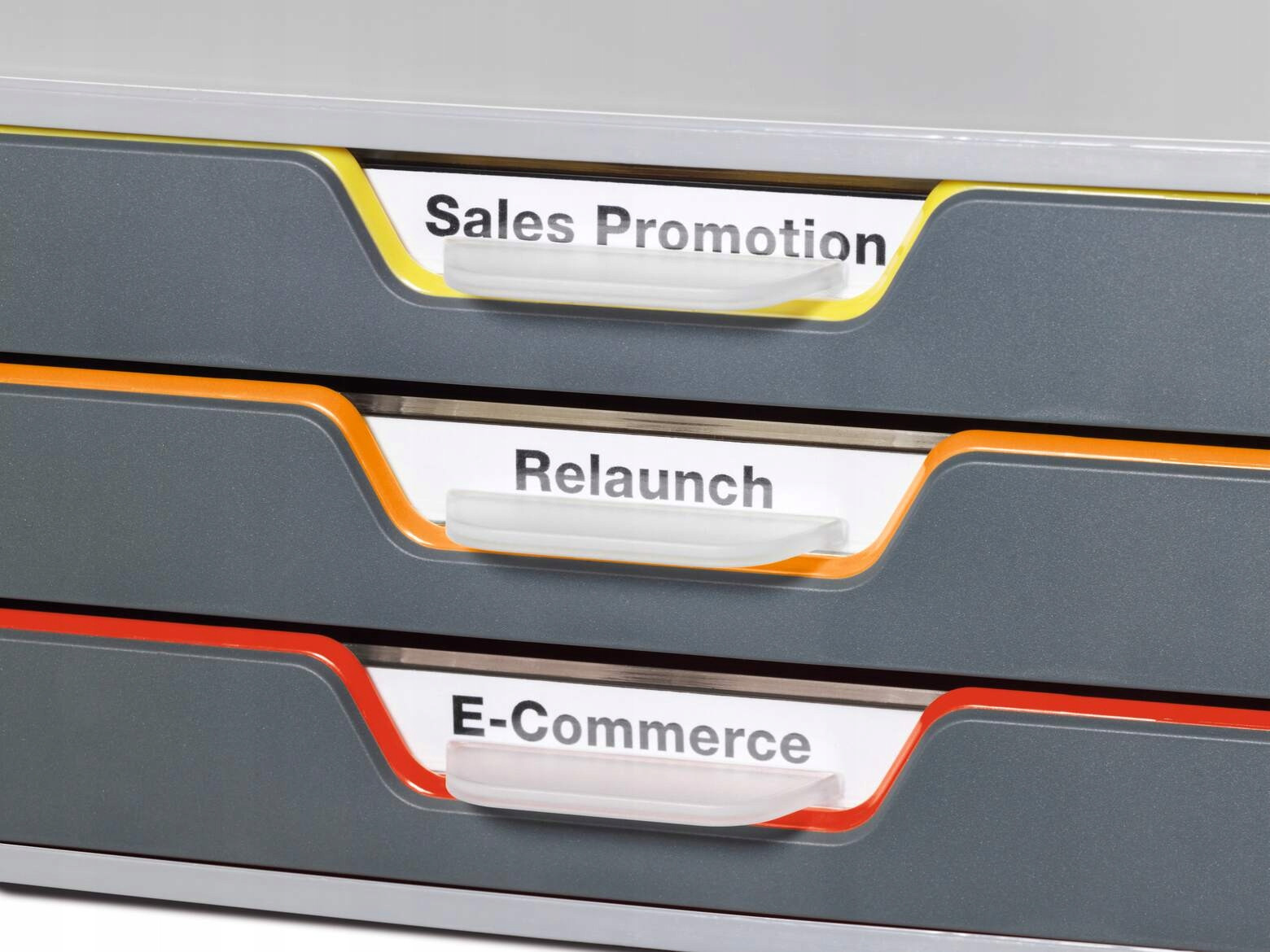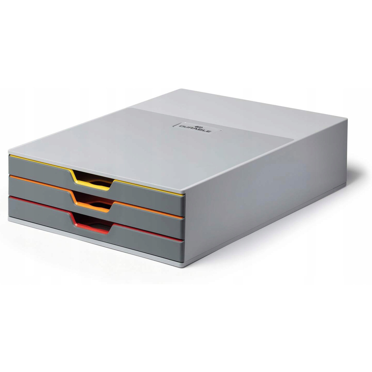 Pojemnik z trzema kolorowymi szufladami umozliwiający segregacje i latwą orientacje w dokumentach. Wykonane z najwyzszej jakości tworzywa ABS.