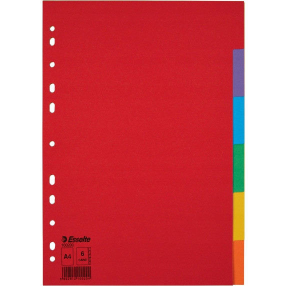 Najwyzszej jakości, wytrzymale przekladki Esselte, utrzymane w zywej tonacji kolorystycznej. Wykonane z kartonu pochodzącego z odzysku, posiadają certyfikat Blue Angel.