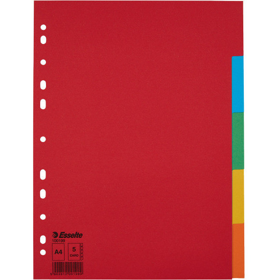 Najwyzszej jakości, wytrzymale przekladki Esselte, utrzymane w zywej tonacji kolorystycznej. Wykonane z kartonu pochodzącego z odzysku, posiadają certyfikat Blue Angel.