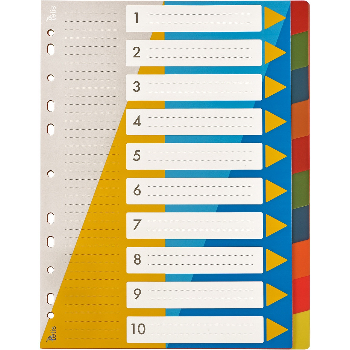 Utrzymane w zywej tonacji kolorystycznej przekladki numeryczne Tetis. Wykonane zostaly z wytrzymalego tworzywa sztucznego - polipropylenu (PP).