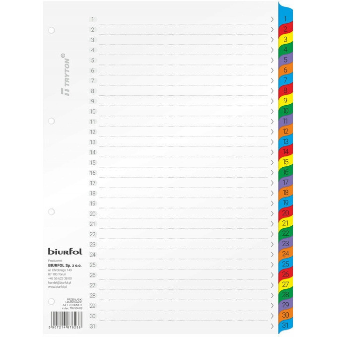 Utrzymane w zywej tonacji kolorystycznej przekladki numeryczne do segregatora są idealnym rozwiązaniem do porządkowania i segregowania dokumentów.