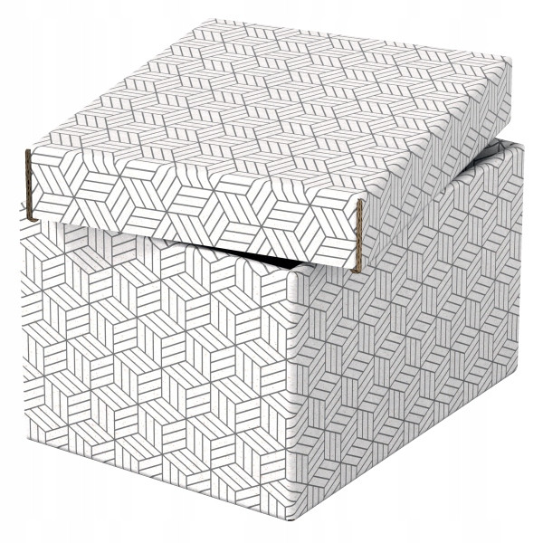 Zestaw trzech nowoczesnych i stylowych tekturowych pudelek ze zdejmowaną pokrywą, idealnych do zapakowania prezentów lub szybkiego wykreowania w domu nowego miejsca do przechowywania.