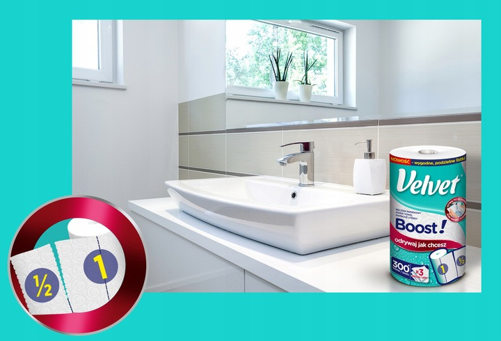 Ręcznik papierowy Boost to 150 extra dużych listków lub 300 wygodnych półlistkow, mocno nawiniętych na jedną smukłą GIGA rolkę. Posiada trzy warstwy niezwykle wytrzymałej, superchłonnej bibułki. Dzięki temu doskonale sprawdza się, podczas prac wykonywanych na sucho, jak i na mokro. Maxi rozmiar listków sprawia, że ręcznik jest bardzo wydajny i wystarcza na dłużej. Dzięki wygodnej wielkości rolki, produkt zmieści się w każdej, nawet małej kuchni.
