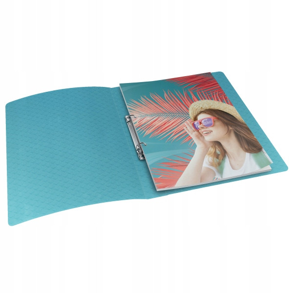 Wykonany jest z elastycznego, latwego do czyszczenia polipropylenu. Posiada 2 okrągle ringi, które umozliwiają latwe przewracanie stron oraz wygodne wyjmowanie i dokladanie kartek oraz etykiete na grzbiecie do opisu zawartości.
