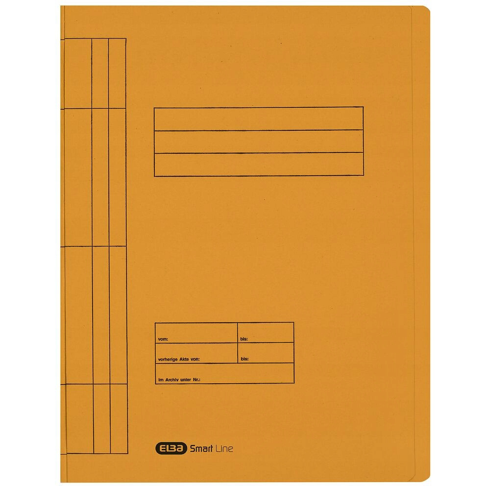 Skoroszyt w formacie A4, wykonany z zóltego kartonu Manilla barwionego w masie. Na frontowej okladce znajduje sie pole do opisu zawartości. Specjalne bigowanie na grzbiecie umozliwia jego poszerzenie dla zwiekszenia pojemności. Metalowe wąsy dobrze mocują dokumenty, co zapobiega ich wypadaniu.