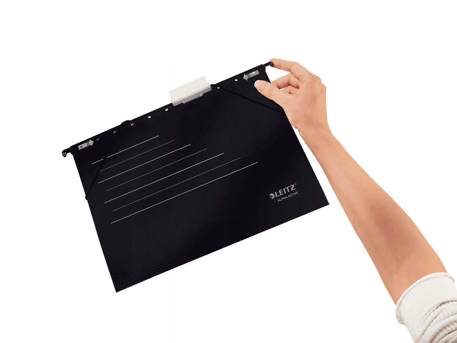 Unikalny system chowanych zawieszek oraz wysuwanych identyfikatorów do opisu zawartości sprawia, ze teczki i skoroszyty są w pelni przystosowane do przenoszenia.