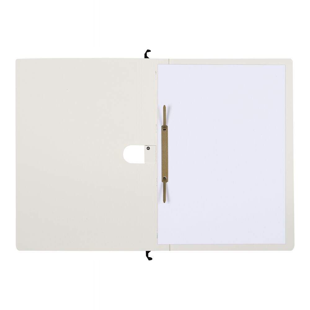 Wewnątrz metalowe zapiecie skoroszytowe, zabezpieczające dokumenty przed wypadaniem. Skoroszyt mieści do 220 kartek.