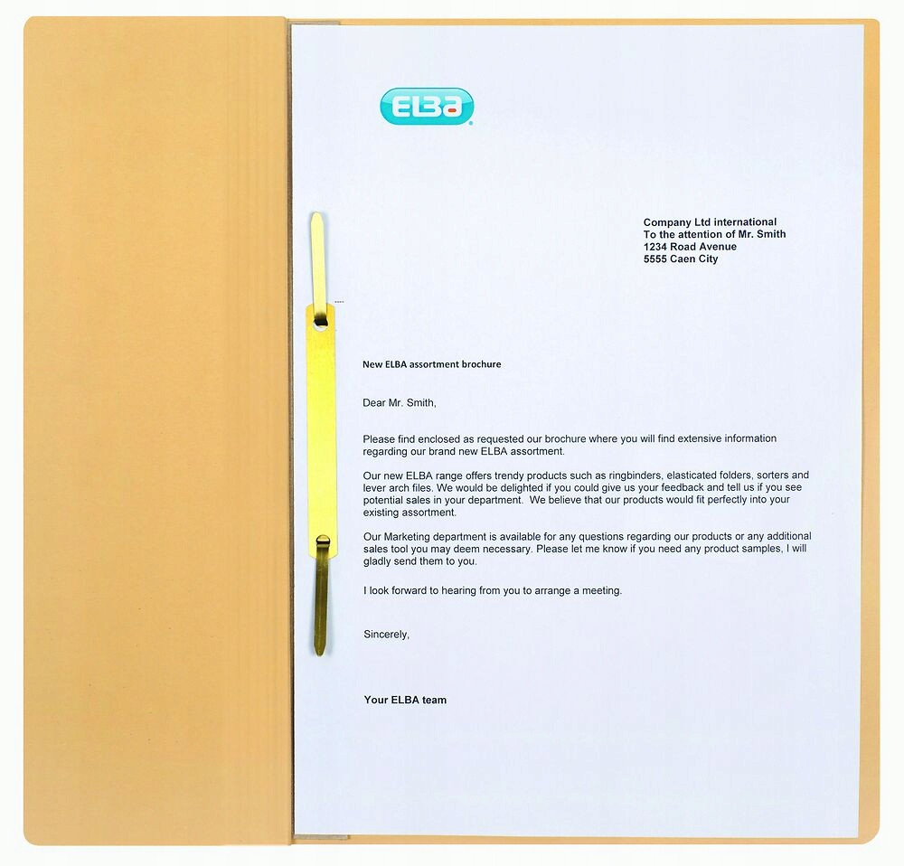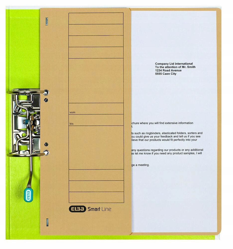 Skoroszyt A4 wykonany z kartonu Manilla barwionego w masie. Frontowa okladka zostala zmniejszona o polowe, dzieki czemu dokumenty są widoczne bez otwierania skoroszytu.