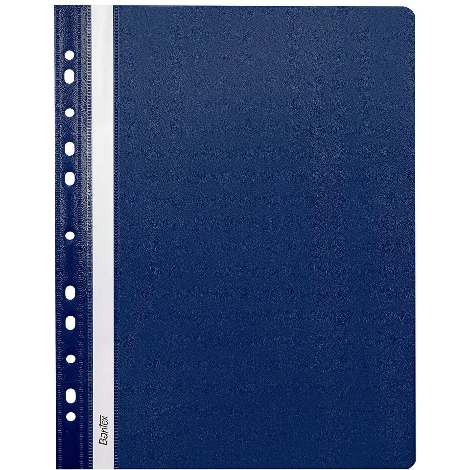 Klasyczne skoroszyty w formacie A4, wykonane z polipropylenowej folii. Przednia okładka o grubości 120 mic. jest przezroczysta dla doskonałej widoczności dokumentów. Tylna okładka o grubości 170 mic. została wykonana z nieprzezroczystej, granatowej folii. Metalowe wąsy bezpiecznie mocują dokumenty w skoroszycie. Na grzbiecie znajduje się wymienny pasek do opisu zawartości. Uniwersalna perforacja umożliwia wpięcie skoroszytów do każdego segregatora.
