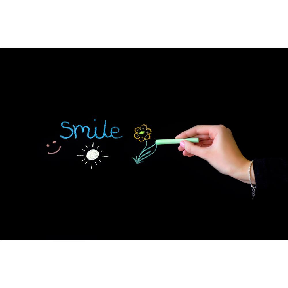 Powierzchnia kredowa dwustronna wykonana z HDF pokrytego lakierem w kolorze czarnym. Optymalny poziom szorstkości powierzchni zapewnia wygodne pisanie kredą i markerami kredowymi. A dzięki wysokiej jakości powierzchni, prezentowane na tablicy treści są dobrze widoczne i czytelne.