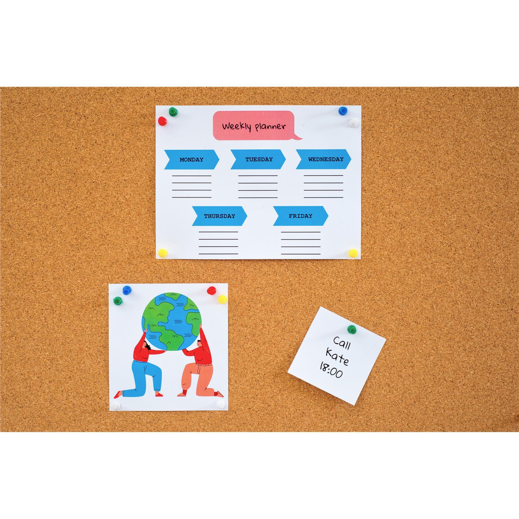 Za pomocą pinezek na tablicy korkowej możemy umieszczać ogłoszenia, zdjęcia, plakaty i wiele innych dokumentów.