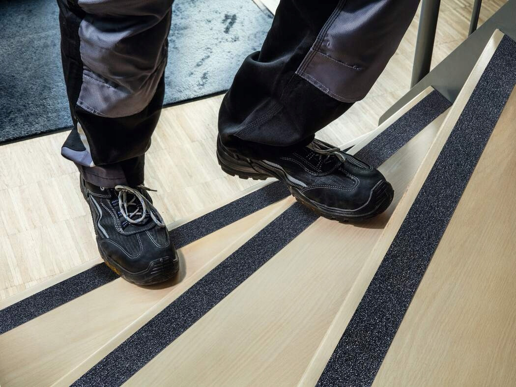 Standardowa antypoślizgowa taśma samoprzylepna do zwiekszenia bezpieczenstwa traktów komunikacyjnych i powierzchni ruchu pieszego.